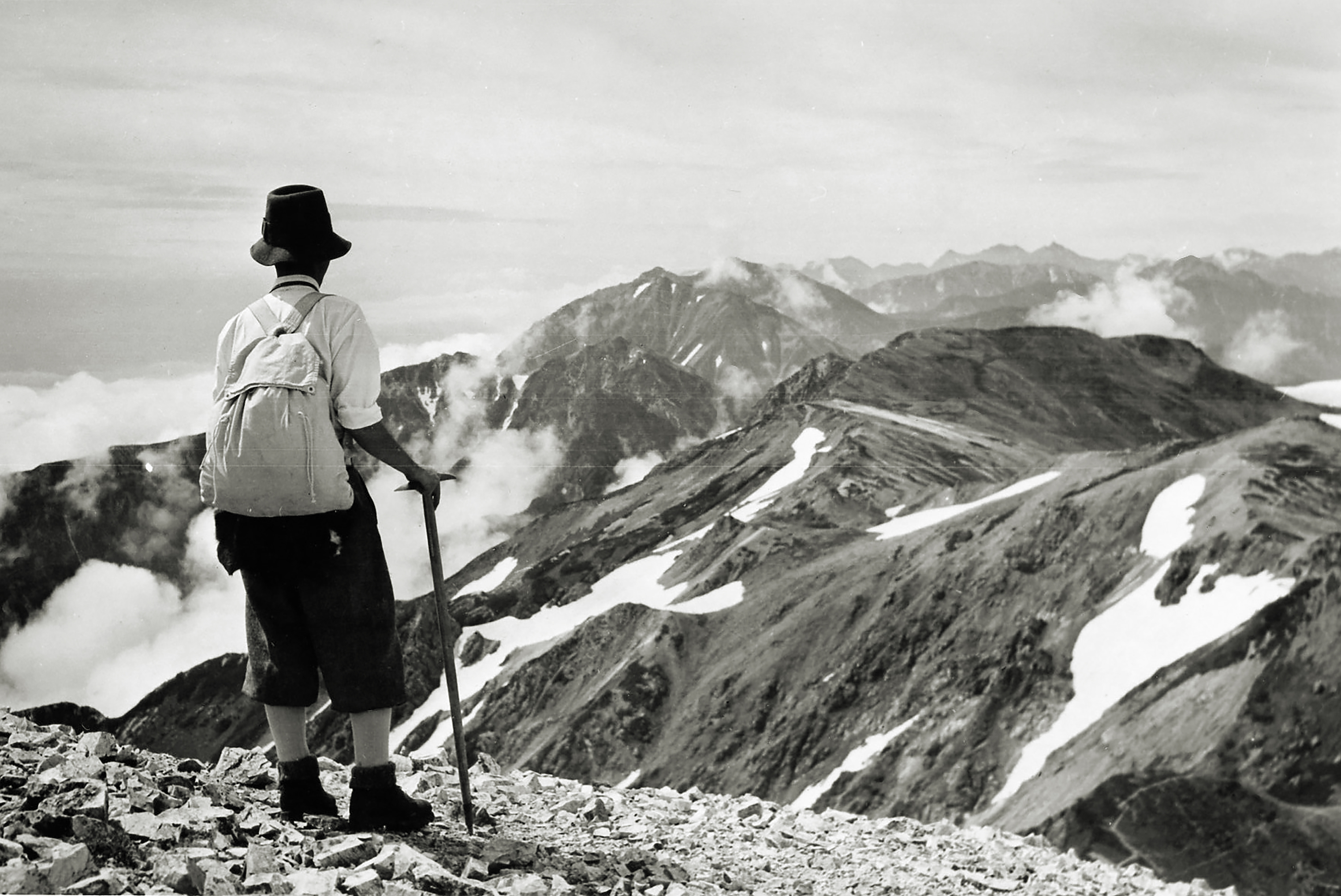 昭和に入り、山案内人には親の後を継ぐ二代目が登場してきます。そうした若い世代の山案内人たちは、当時の登山界をリードした大学山岳部のメンバーと組むことにより、より困難な積雪期登山やバリエーションルート登攀、海外登山に挑戦するようになります。また、登山にスキーを導入すると同時に、スキー技術の向上を目指しました。そうした積極的な活動が、昭和6年の白馬岳主稜初登攀や、白馬案内人組合員としては初の海外遠征となる昭和12年の積雪期台湾中央山脈遠征といった成果に結実していきます。こうして白馬案内人は、地元の山に精通した案内役という存在から、オールシーズンに対応できるガイドへとステップアップを果たし、広く日本の山岳界に認められるようになります。