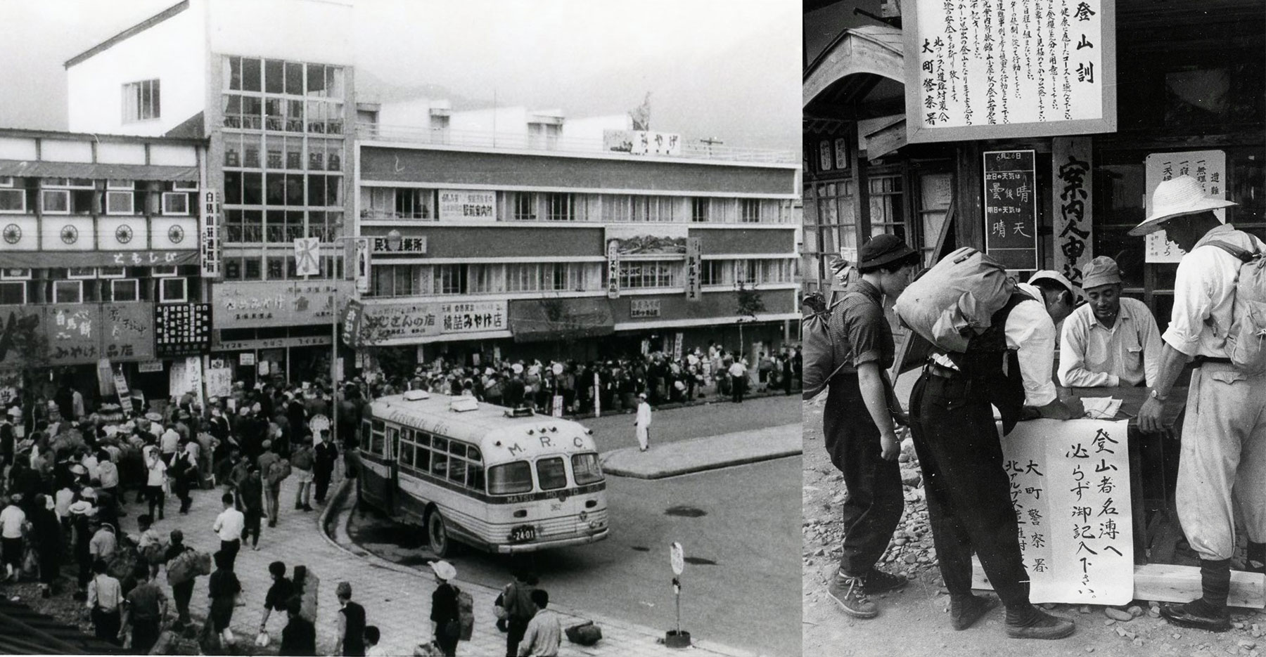 昭和31年、日本隊のマナスル初登頂により、空前絶後の登山ブームが巻き起こります。限られた一部の人間の活動だった登山が、国民の楽しみとして広く普及したのです。そうした登山の大衆化を受けた白馬では、山小屋の増築や新設、登山道や麓の受け入れ体制の整備などが急速に進められます。当時、東京・銀座の有名百貨店には白馬山案内人組合による夏山相談所が開設され、夏の白馬には1日あたり数千人単位の登山客が押し寄せ、登山口の猿倉から大雪渓を経て山頂まで、登山者の列が途切れることなく続いたほどです。また同時に、遭難対策も急務であり、昭和31年には長野県警察と連携する遭難者救助隊が白馬に設置されます。この救助隊員を務めたのは、白馬の山に精通し、確かな技術と経験を持つ白馬山案内人組合のガイドたち。以降、現在に至るまで、北アルプス北部登山遭難者救助隊隊員は全員、白馬山案内人組合のガイドが兼務しています。