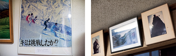 左)スキー教師時代にはポスターのモデルとして滑った。右)著名な山岳写真家の被写体になったことも