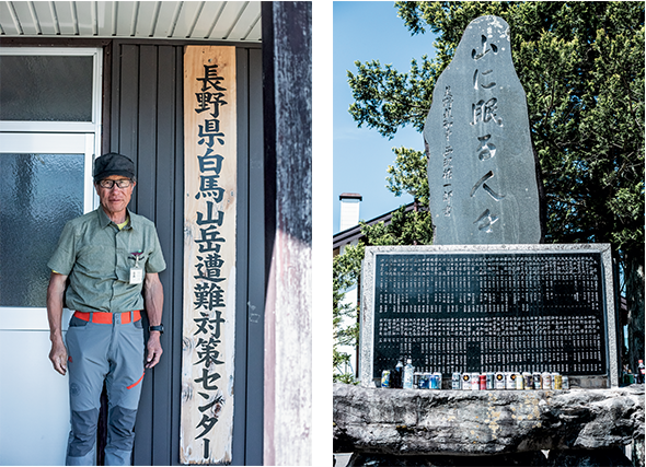 長野県白馬山岳遭難対策センターは、白馬村交番の隣にある。隣には慰霊碑が建っており、山で亡くなった人の名が刻まれている